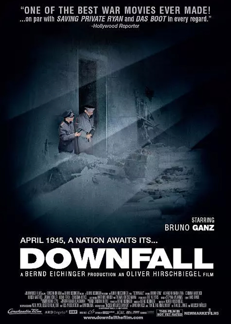 这是一部纪实性电影,逼真地反映了希特勒人生的最后12天,第三帝国最后的日子苏联红军已经攻入柏林,希特勒(布鲁诺•甘茨 Bruno Ganz 饰)和情妇爱娃(茱莉安•柯勒 Juliane Köhler 饰)也躲到了掩体下。爱娃知道自己是来陪希特勒一起共赴黄泉的,但她并不后悔。即使在她向希特勒为妹夫求情遭拒绝后,她也和希特勒一起举办了最后一次的婚礼。希特勒的忠实追随者戈倍尔(科琳娜•哈弗奇 Corinna Harfouch 饰)决心全家一起陪着元首殉葬。他共有7个孩子,他和妻子坚决不让自己的孩子们在没有帝国的天空生长,在希特勒和爱娃自杀后也一同自杀。令人不胜感慨。历史的真实通过镜头一幕幕重现。